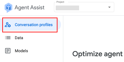 1.Navigate to the Agent Assist Console and click on the Conversation profiles menu option on the left side of the page: