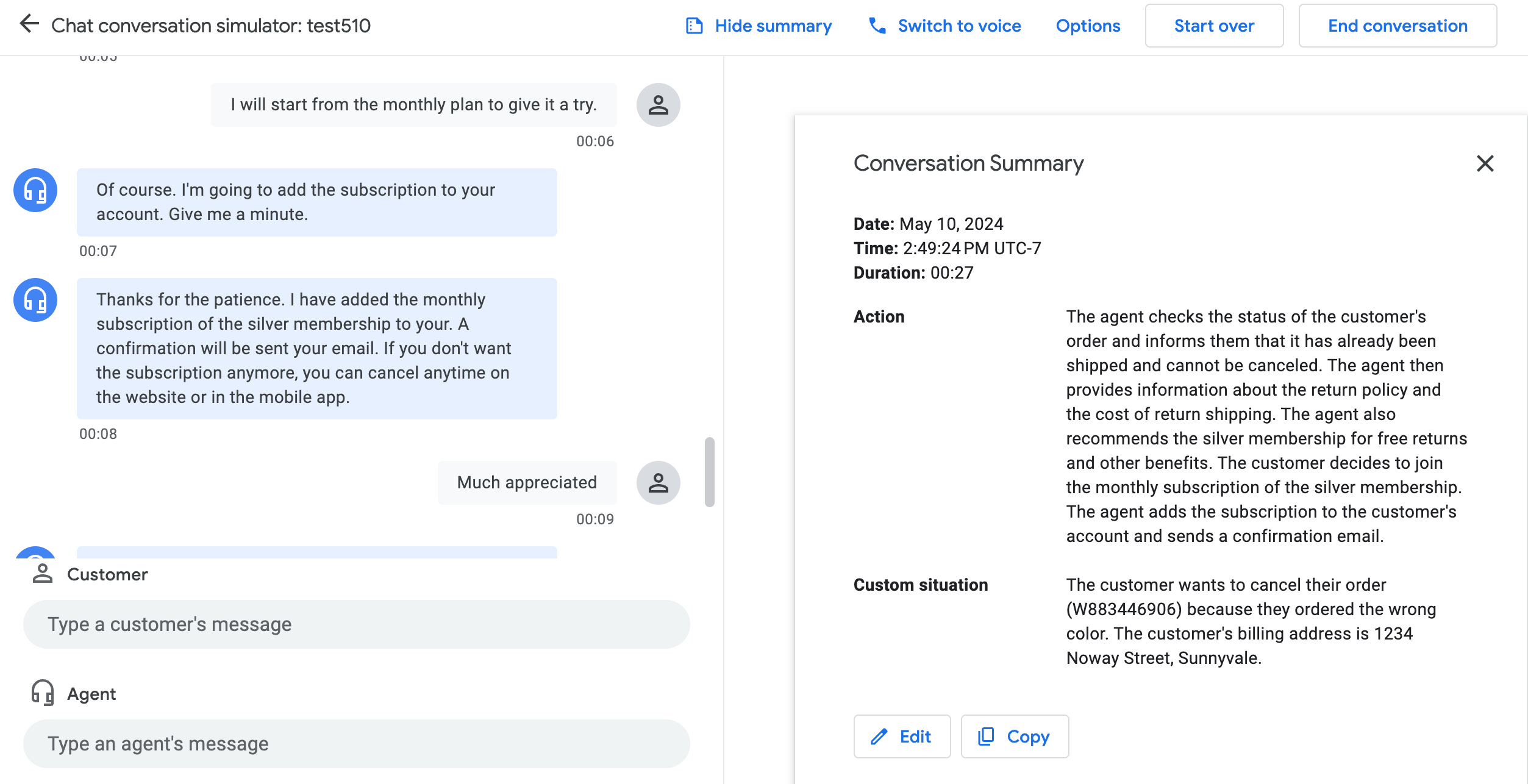 You can verify the conversation profile in the Agent Assist simulator.