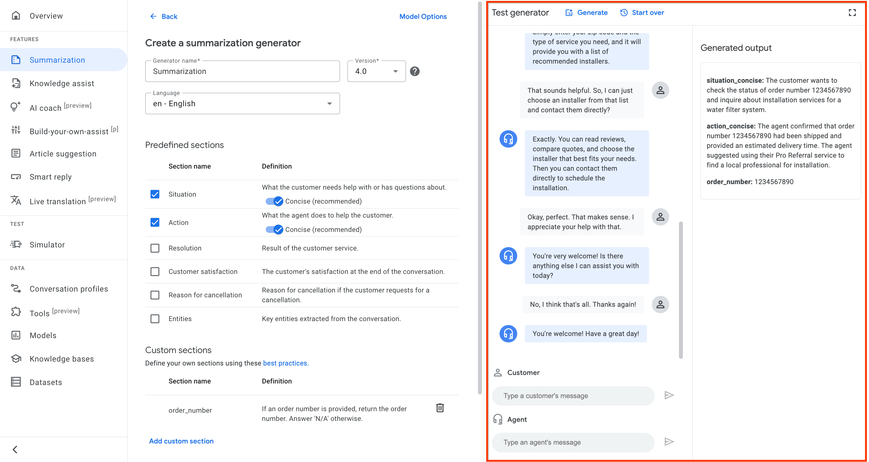To create a summarization generator using the Agent Assist console, do the following: