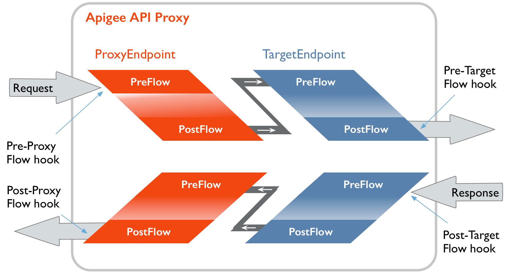 Post-proxy Executes after the proxy endpoint and right before the response is sent out to the client