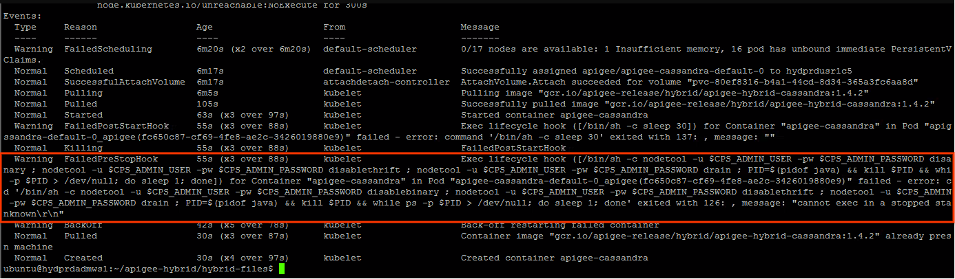 - You will observe the following error message in the Cassandra pod logs: