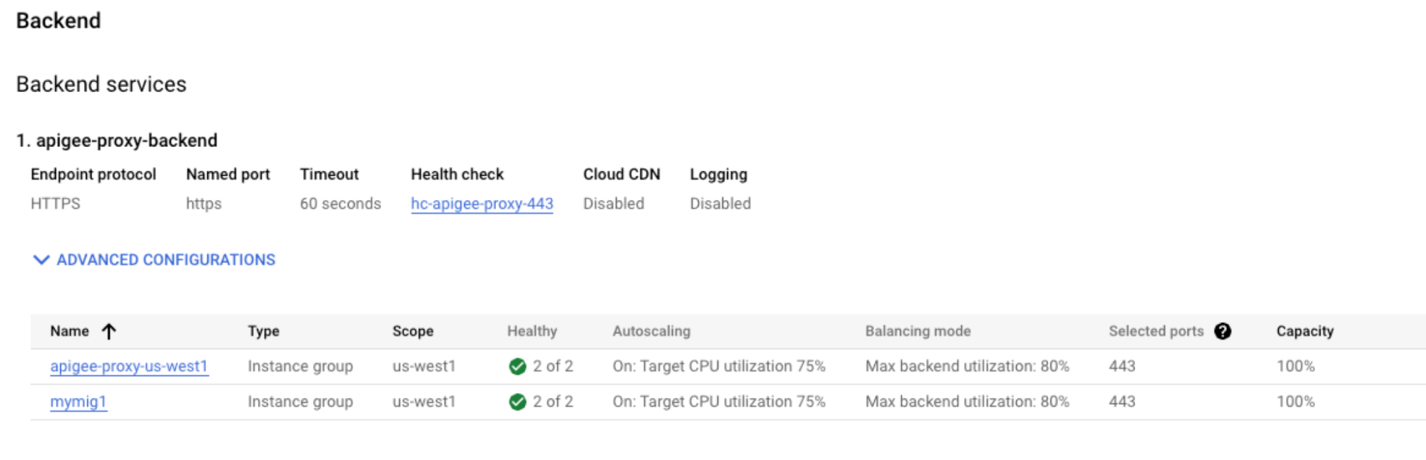 - Validate the second MIG by following the steps in Apigee proxy VMs are unable to forward the traffic to Apigee instance.
