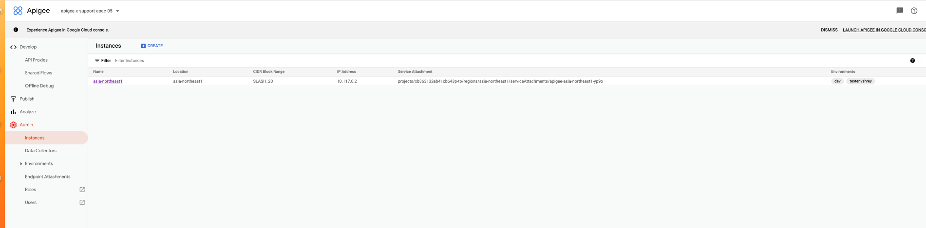 - If the ENDPOINT IP address does not match the Apigee instance IP address, it is possible that the instance was deleted and recreated, which would result in an IP address that no longer matches the IP address in the template. To update the template to use the new IP address, follow the instructions in Changing instance IPs.