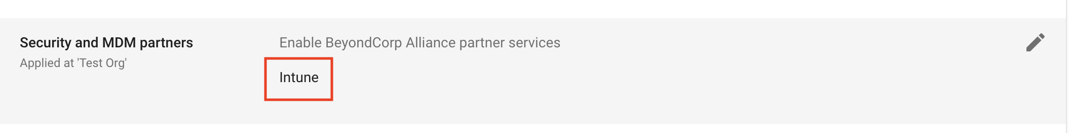 Microsoft Intune is now listed in the Security and MDM partners section. Depending on the size of your organization, it might take a few seconds to establish the connection between Endpoint Verification and Intune. After the connection is established, the devices might take a few minutes to an hour to report Intune data.