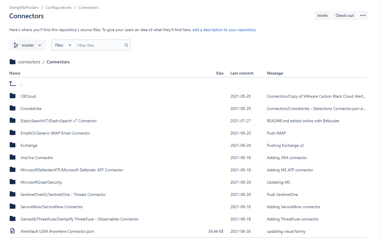 Example from a repository in Bitbucket, In the Connectors directory. Note that directories are the integration names, and inside them are the real identifiers for the connectors. Find the suitable job in Google SecOps IDE. In this example, we'll use the job Pull Connector.