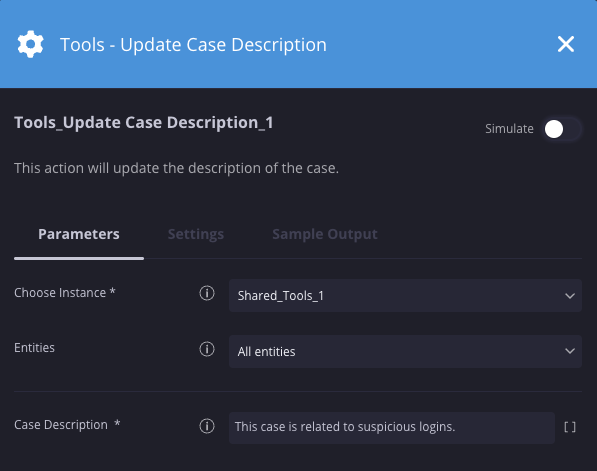 | Case Tag | String | N/A | No | Tags to add to the case. |