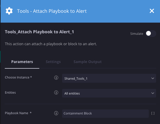 | Playbook Name | String | N/A | Yes | Playbook or block name to add to all case alerts. |