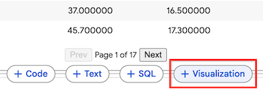 Hold the pointer between two cells in your notebook to indicate where you want to add the visualization cell, and click the Visualization button.