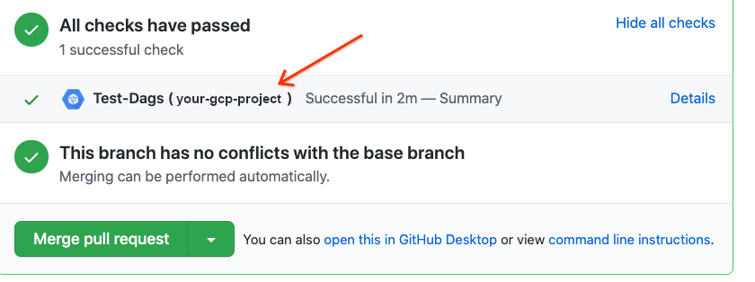 From your pull request, click Details and choose View more details on Google Cloud Build to see your build logs in the Google Cloud console. Use these logs to help you debug the problem with your DAG. Once you have resolved the issues, commit the fix and push to your branch. The presubmit check runs again, and you can continue to iterate using the logs as a debugging tool.