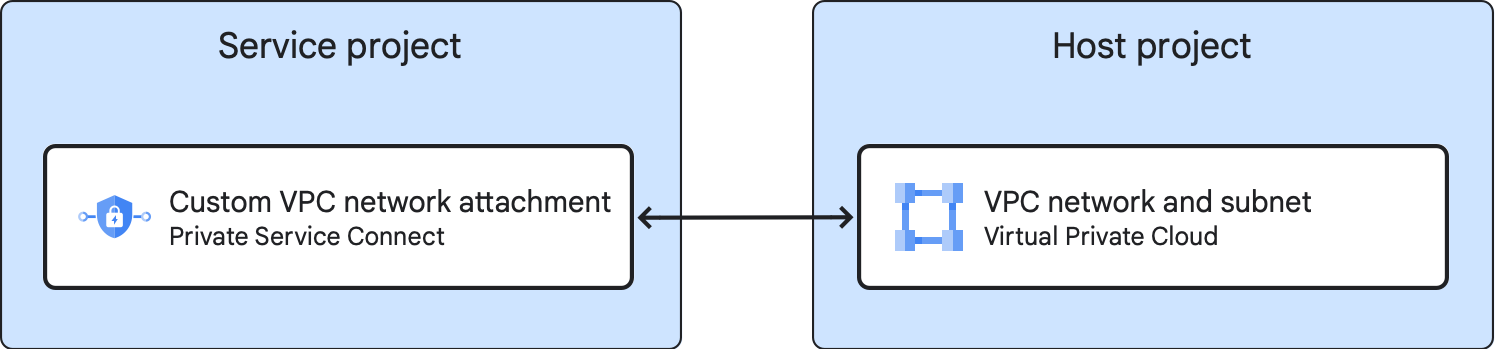 - Create a network attachment in the service project, connect it to a Shared VPC network, and connect one or more environments to this network attachment.