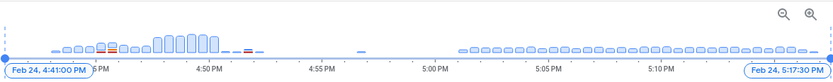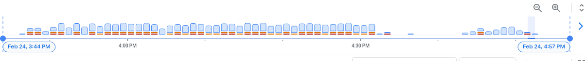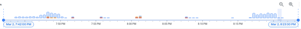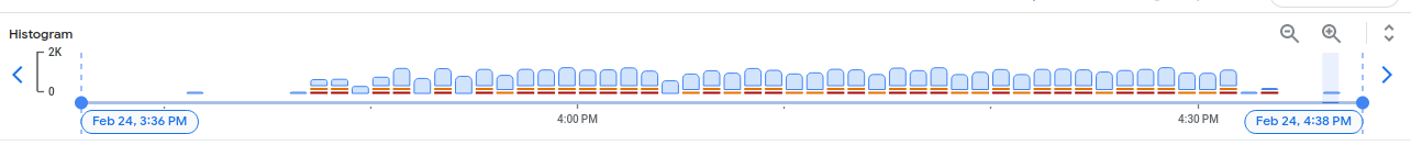 On the logs histogram, you can see the errors and warnings indicated with red and orange colors: