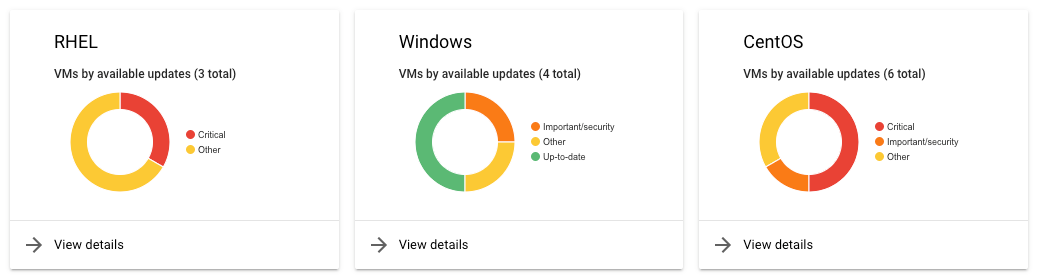 4. Selects the highest severity data for each available update and shows it on the Google Cloud console dashboard page. You can also see a full report of all available updates for the VM on the VM details page.