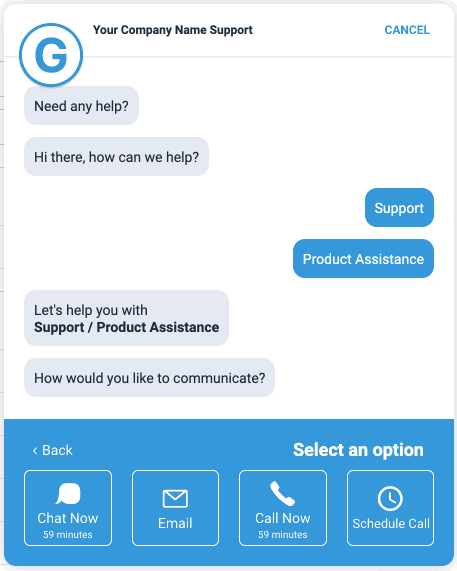 When enabled, Mobile FAQ allows you to show a webpage while remaining in the app, with an option of showing a phone number as well on the screen. To enable contact support,