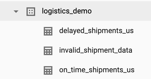This tutorial creates a logistics_demo dataset with several tables in your project.