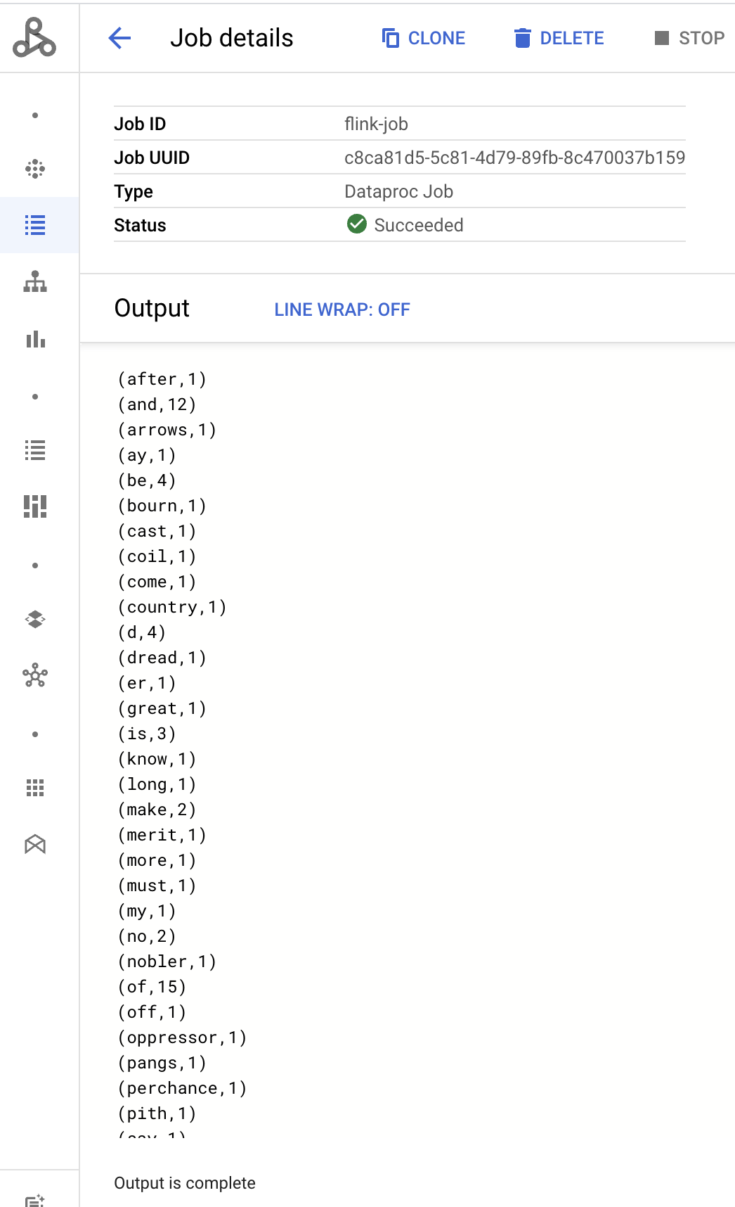 gcloud storage cat gs://BUCKET_NAME/python-wordcount-out-SHARD_IDStop the Flink YARN session.