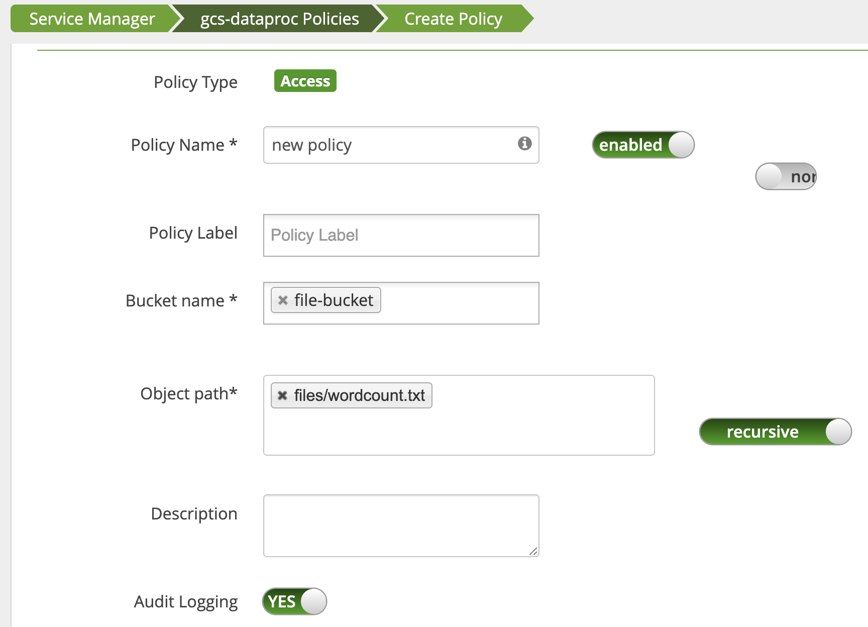 com.google.gcs.ranger.client.shaded.io.grpc.StatusRuntimeException: PERMISSION_DENIED: Access denied by Ranger policy: User: <USER>, Bucket: '<file-bucket>', Object Path: 'wordcount.txt', Action: 'READ_OBJECTS'