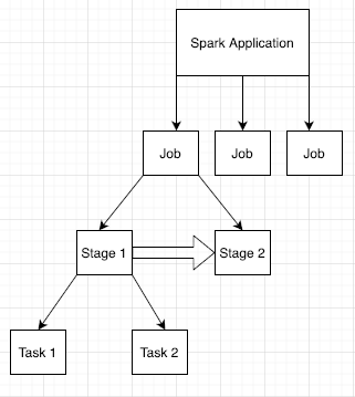 Spark applications are broken down into multiple jobs, which are further broken down into multiple stages. Each stage can have multiple tasks, which are run on executor nodes (workers).