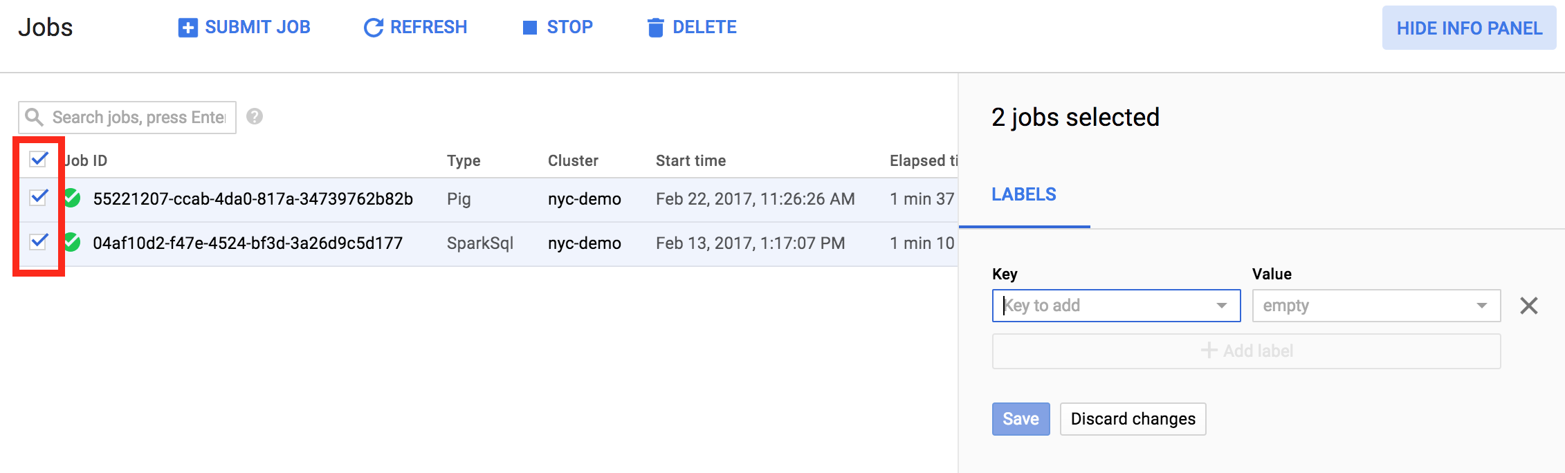 - Add labels to a job from the Managed Service for Apache Spark Submit a job page.