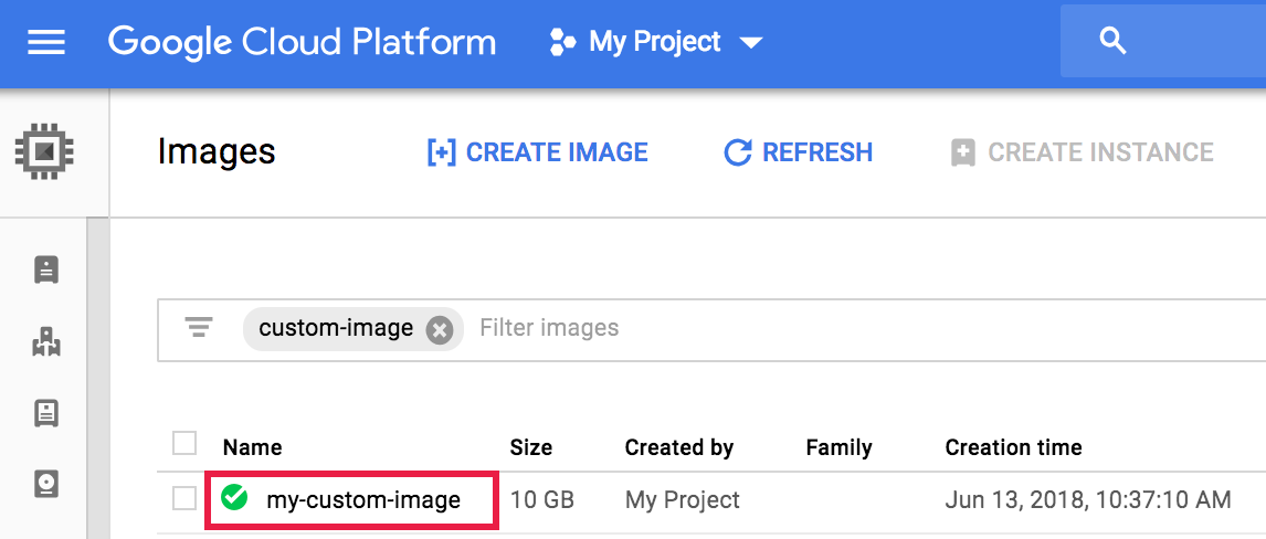 Custom images can also be specified by their family URI, which always chooses the most recent image within the image family.