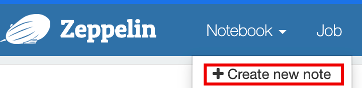 From the Zeppelin notebook menu, click Create new note.