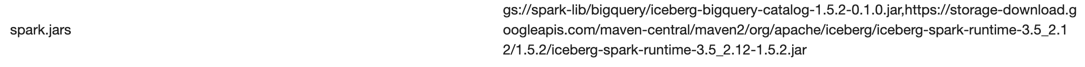 BIGLAKE_ICEBERG_CATALOG_JAR: the Cloud Storage URI of the Iceberg