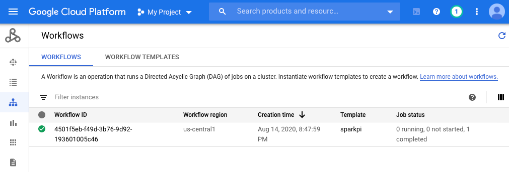--filter="labels.goog-dataproc-workflow-template-id=sparkpi"