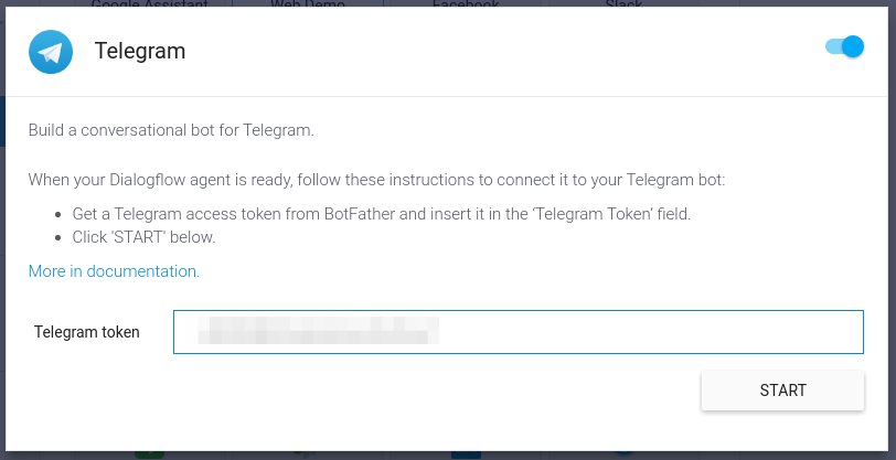 Dialogflow Telegram Integration allows you to easily create Telegram bots with natural language understanding based on the Dialogflow technology.