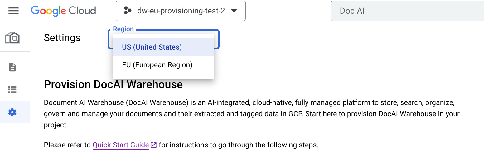 Provision Document AI Warehouse in a brand new project