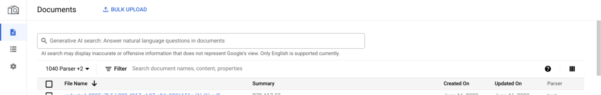 • In the filename column, you can find the details on the document schema and last updated time.