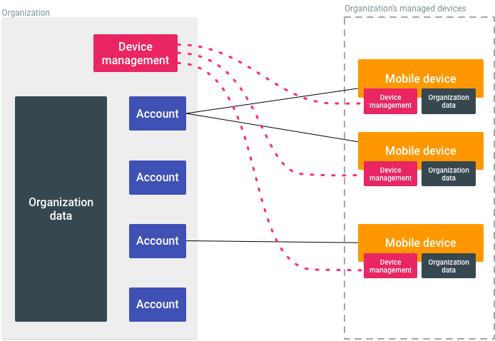 Each mobile device is associated with an account in the organization.