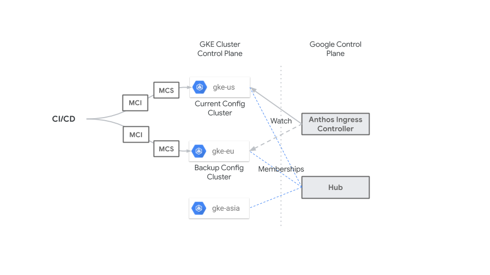 Multi Cluster Ingress controller - This is a globally distributed control plane that runs as a service outside of your clusters. This allows the lifecycle and operations of the controller to be independent of GKE clusters.