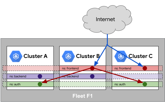 Put another way, within a fleet, clusters provide protection from blast radius concerns, availability (of both the control plane and underlying infrastructure), noisy neighbors, and so on. However, they are not a strong isolation boundary for policy and governance because administrators of any member in a fleet can potentially affect the operations of services in other members of the fleet.