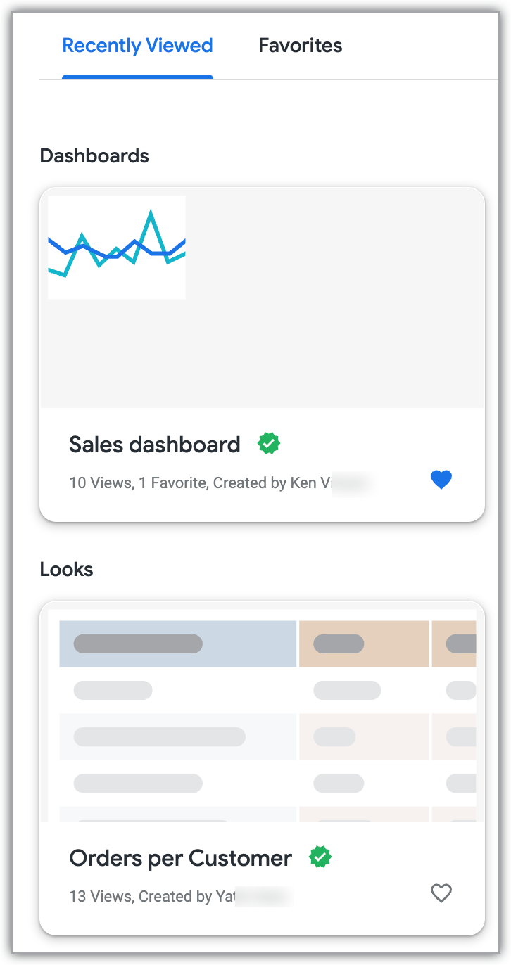 | Governed data (dashboards, LookML dashboards, and Looks that are based on LookML models) | No badge | |