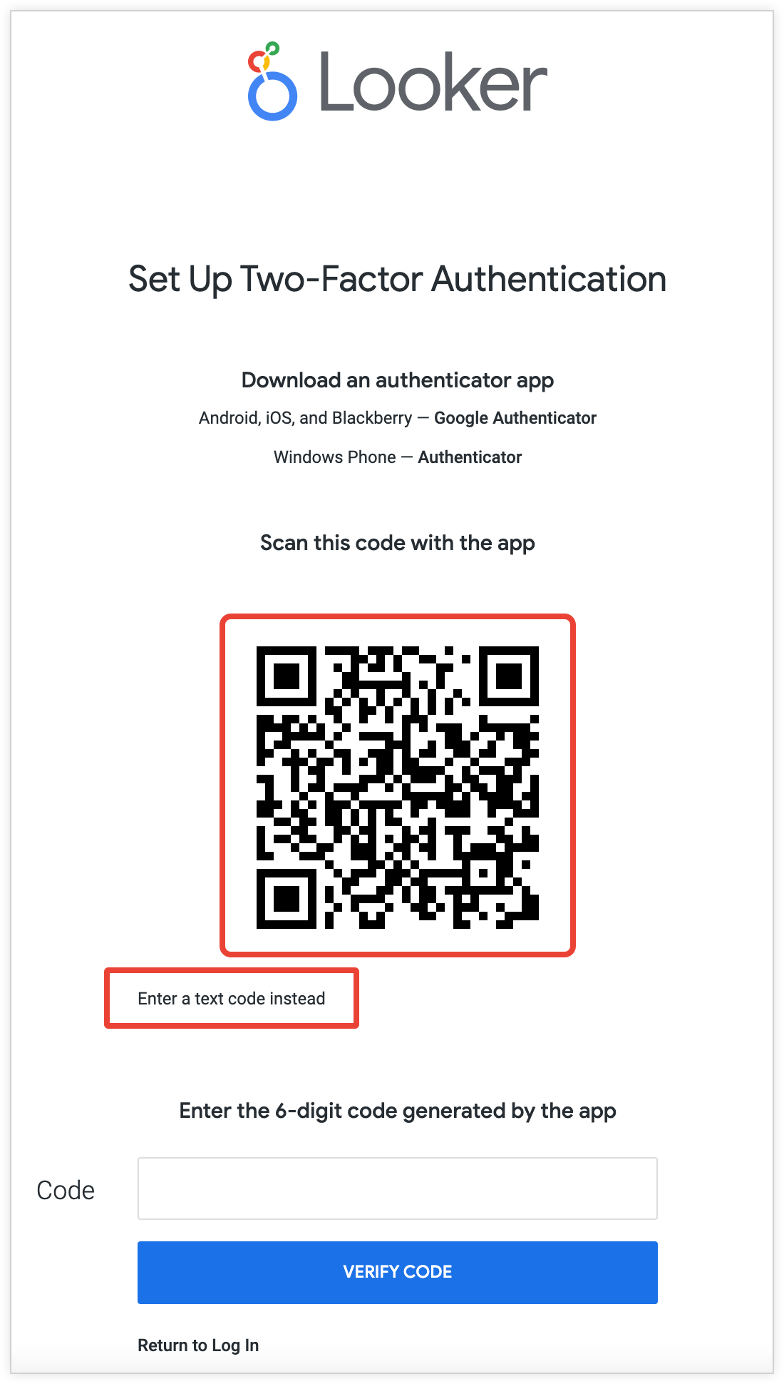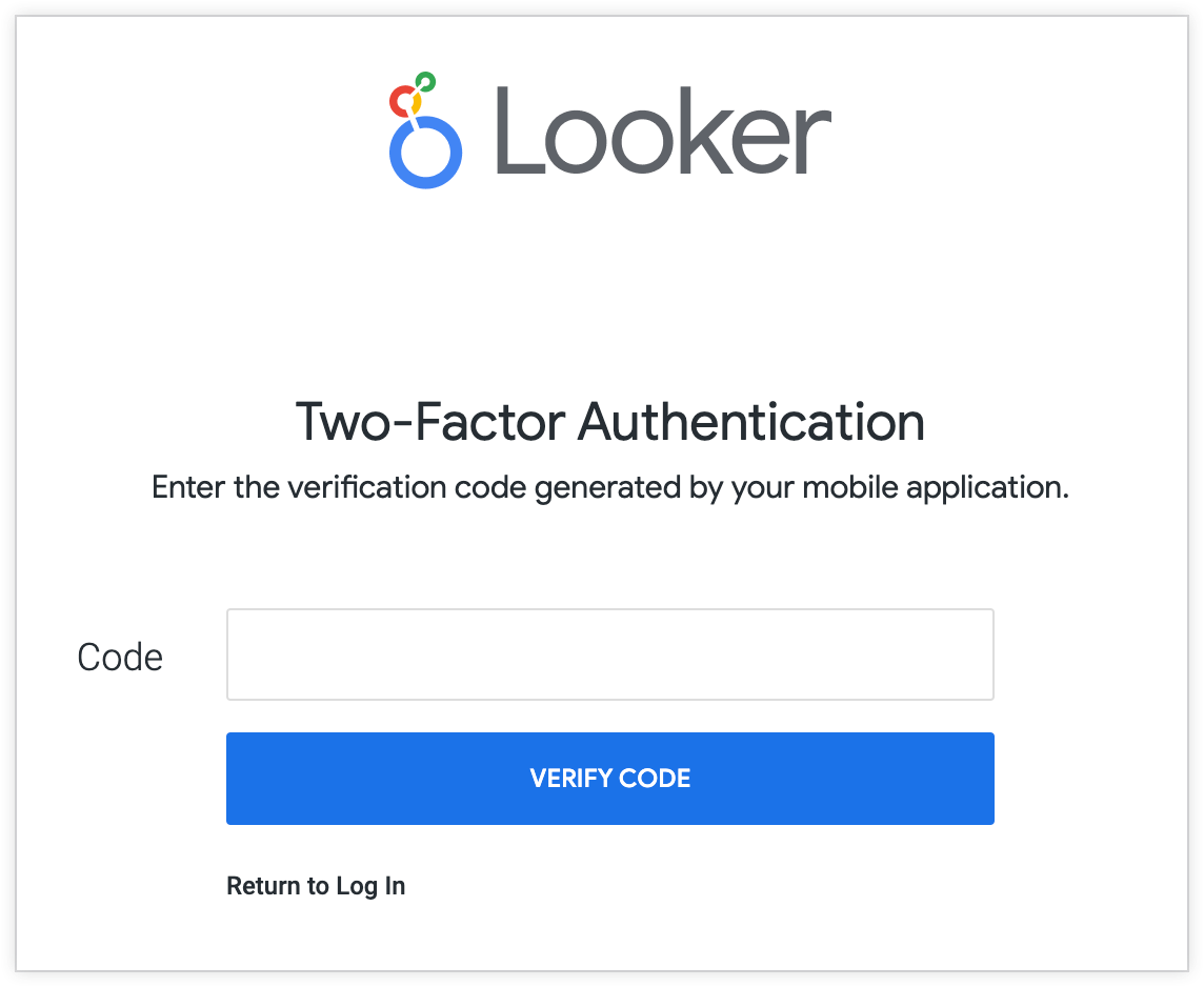 Looker provides two-factor authentication (2FA) as an additional layer of security to protect data that is accessible through Looker. With 2FA enabled, every user who logs in must authenticate with a one-time code generated by their mobile device. There is no option to enable 2FA for a subset of users.