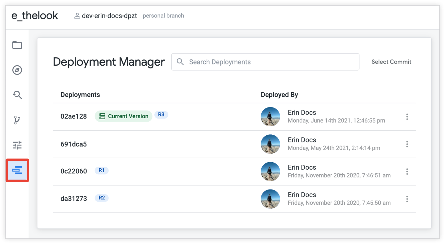Once you a deploy a commit, the deployment manager will mark the commit as the current version on your Looker production environment.