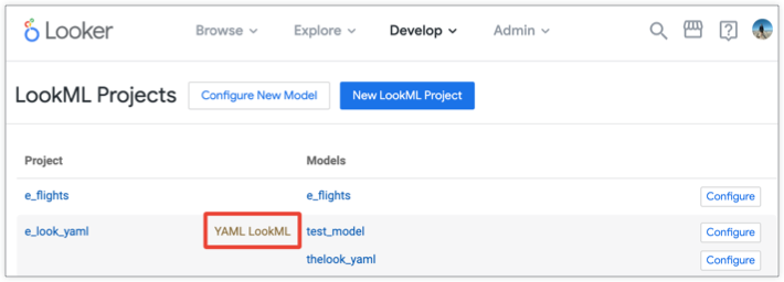 Find YAML projects on your Looker instance