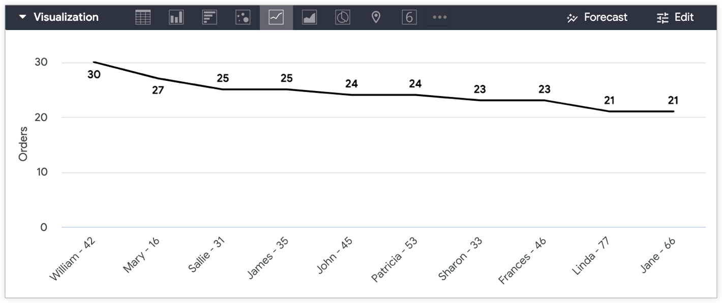 For example, you can visualize Orders Count values as a line and Users Age values as a column to distinguish them once Users Age is plotted on the y-axis.