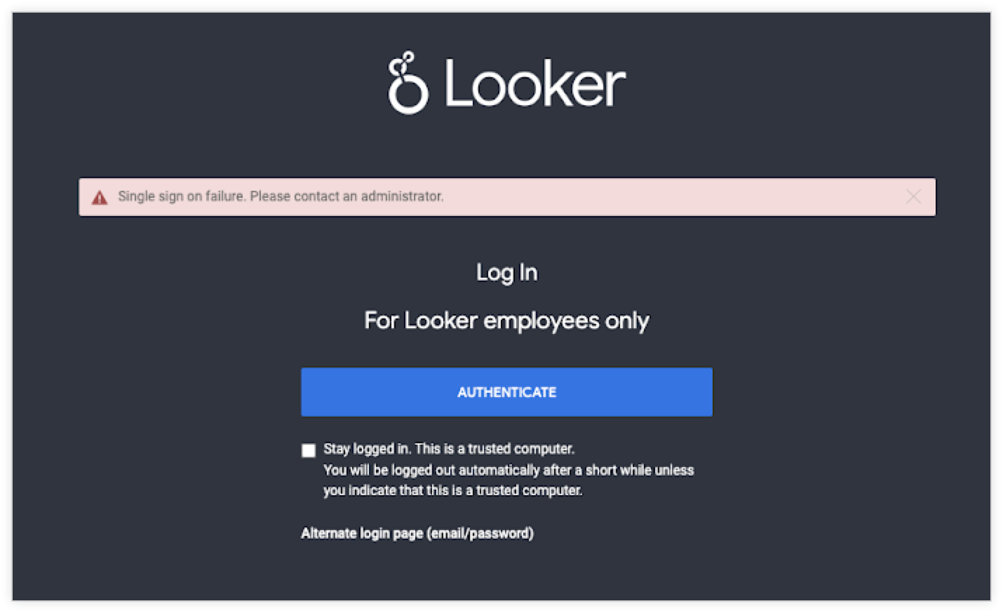 It can be challenging to troubleshoot authentication errors when you're using signed embed for your Looker content. There are a few different approaches you can take to try and diagnose issues, and you will choose an approach based on where your redirects are sending your users. The tips on this page assume that you are generating your signed embed URL using a script similar to those in Looker's Embed examples GitHub repository, unless stated otherwise.