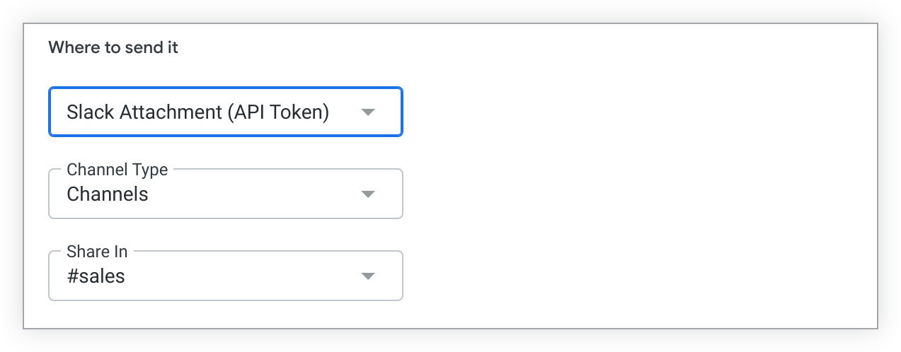 Select Slack Attachment (API Token) from the Where to send it drop-down.