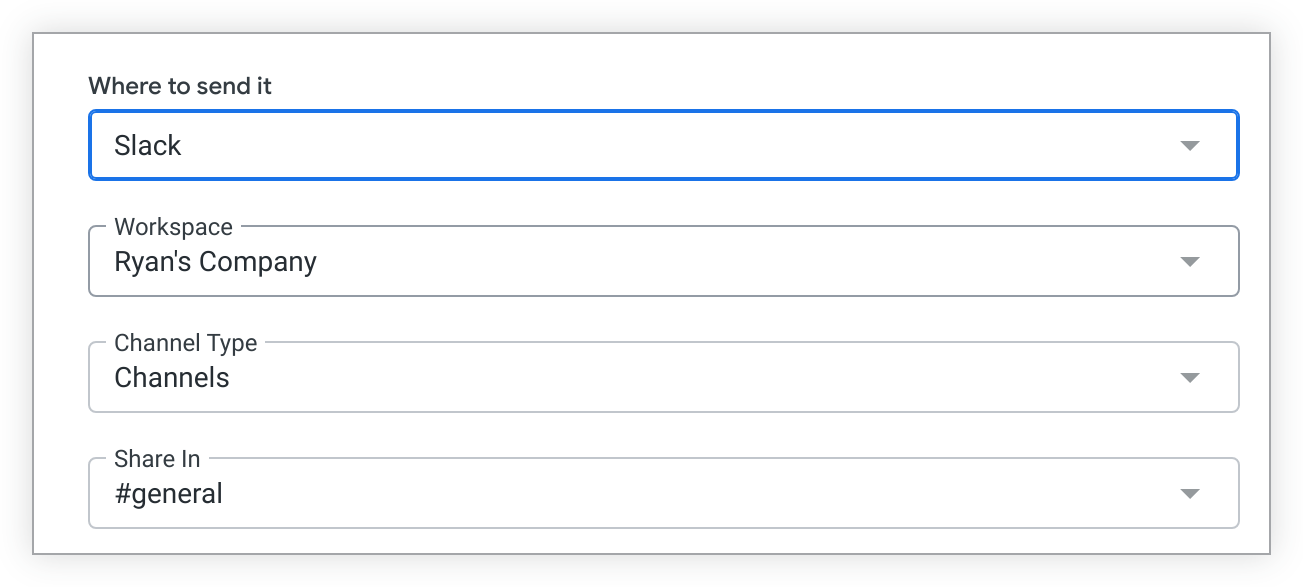 Select Slack from the Where to send it drop-down.