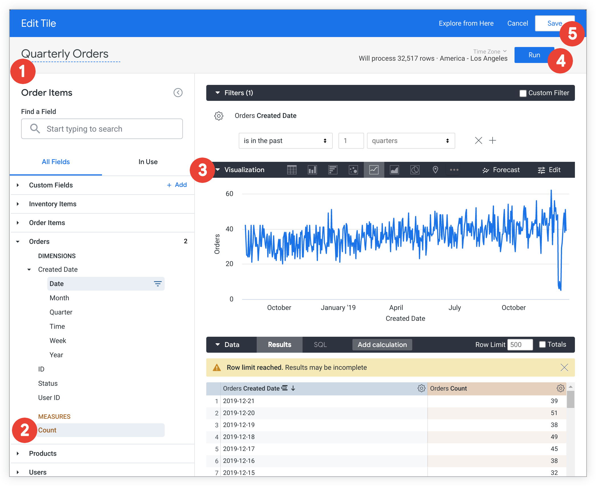 Looker opens the Explore window to let you build your query. To build a query, follow these steps: