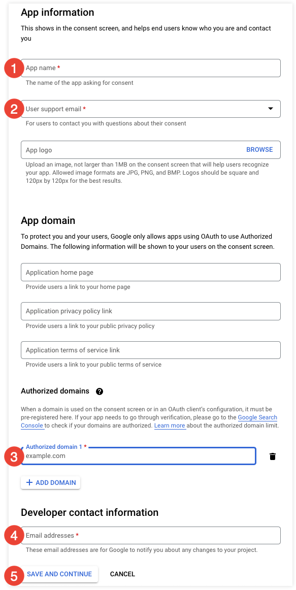 The remaining fields are optional, but you can use them to further customize your consent screen.