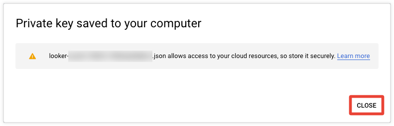 The JSON key will be saved to your computer.