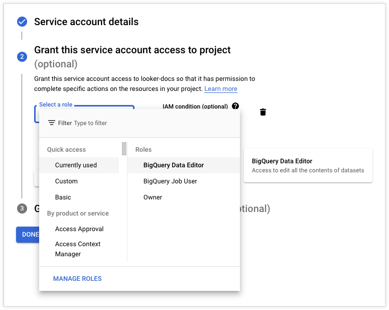 - BigQuery > BigQuery Job User