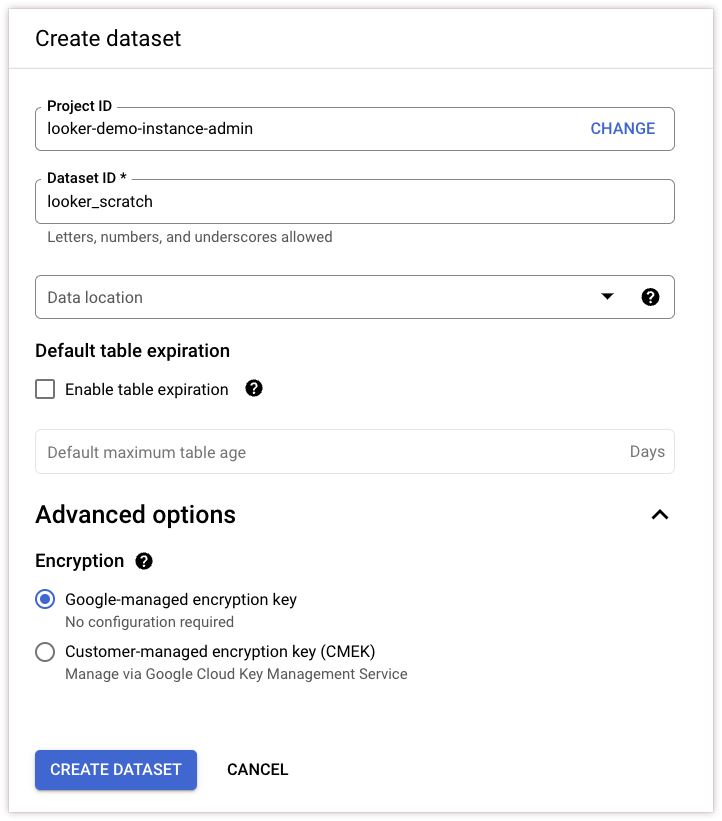 On your BigQuery database, if you want to use persistent derived tables (PDTs) on the connection, create a temporary dataset that Looker can use to create PDTs on your database. See the section Creating a temporary dataset for persistent derived tables on this page for the procedure.