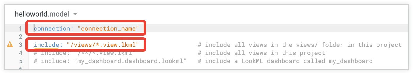 Replace connection_name in the connection parameter with the name of a valid database connection on your instance. The extension requires a valid model file because Looker permissions data is accessed through the LookML model. To manage access to your extension, you must associate the extension with a valid LookML model and grant users permissions to access that model. When you are done editing the model file, click Save Changes.