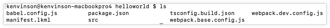 The create-looker-extension utility will then use the framework that you specified to populate a base template and put all the generated files into a new directory that uses the name of the extension: