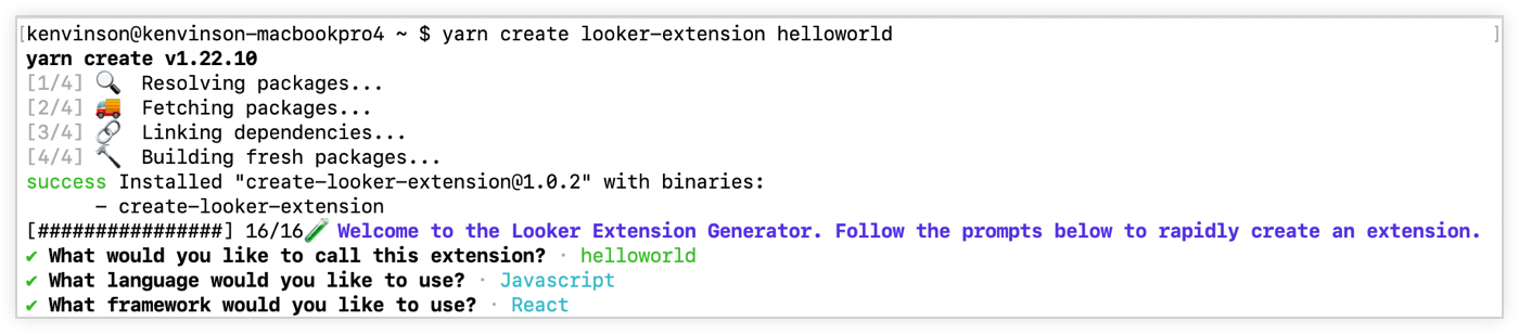 1. Run the create-looker-extension utility, replacing <extension_name> with the name of your extension: