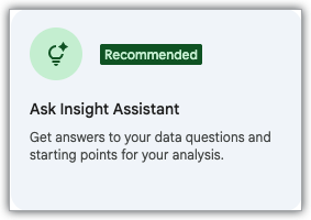 Open the Insight Assistant panel by either clicking Insight Assistant button or by clicking the Ask Insight Assistant tile in a blank Explore: