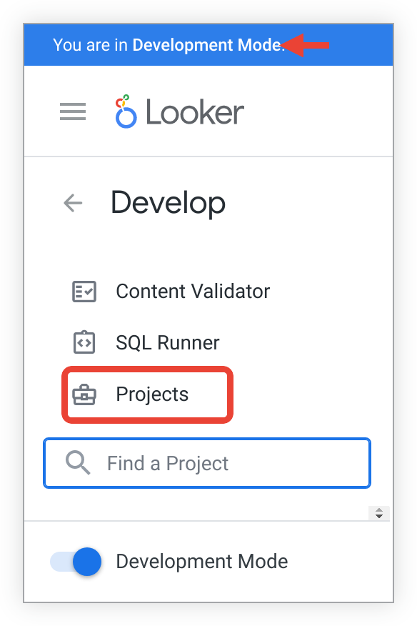 • the Add LookML button in the Pending Projects section of the Projects page